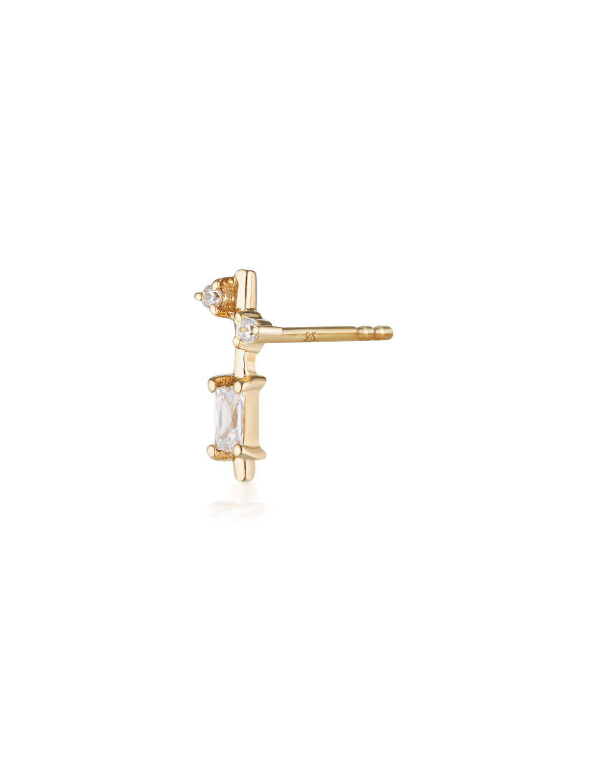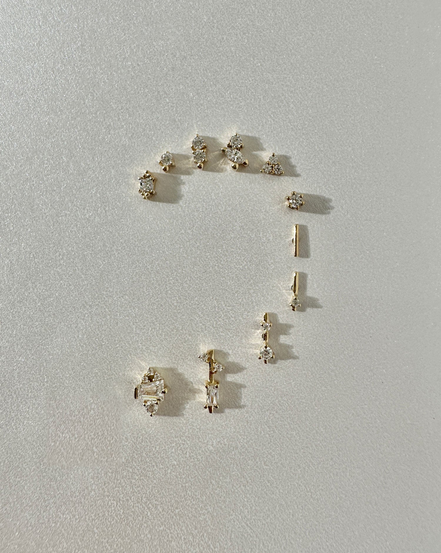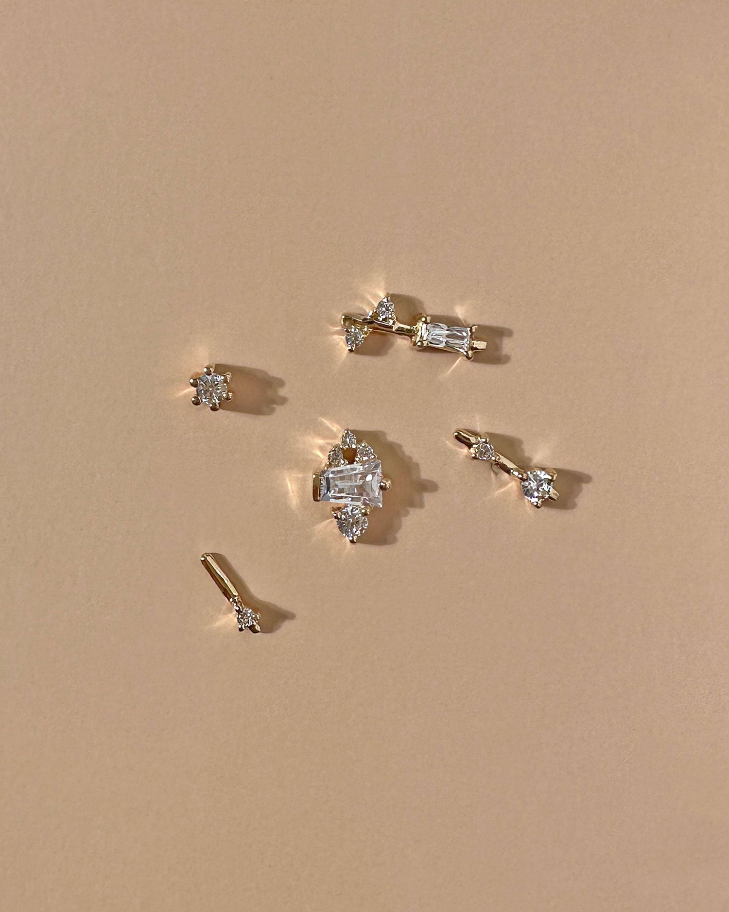 Studs: Stud earrings are the most commonly seen type of earring that has a front detail, a straight earring post, and a push on earring backing. When worn, the earring stays typically fixed and doesn't move.