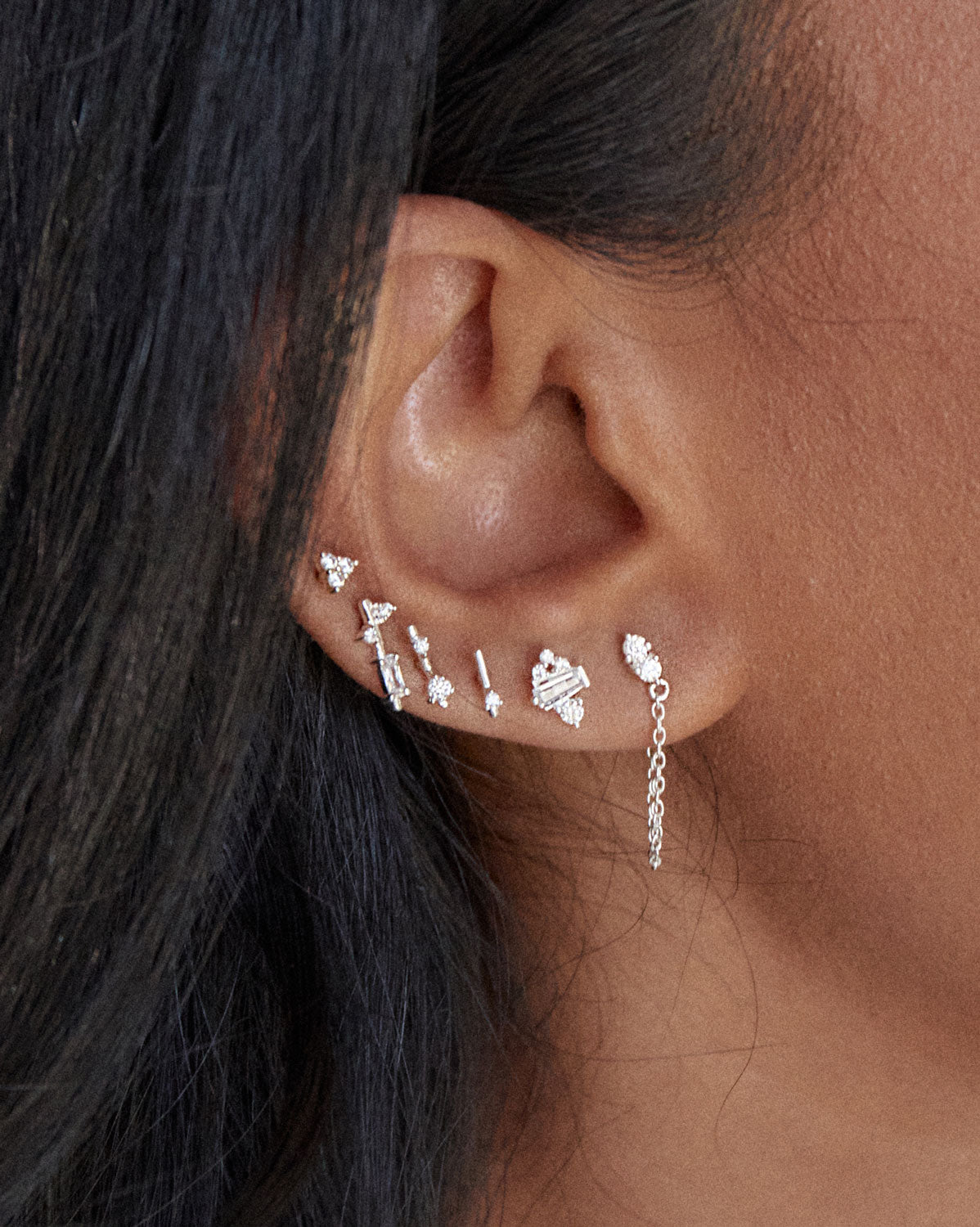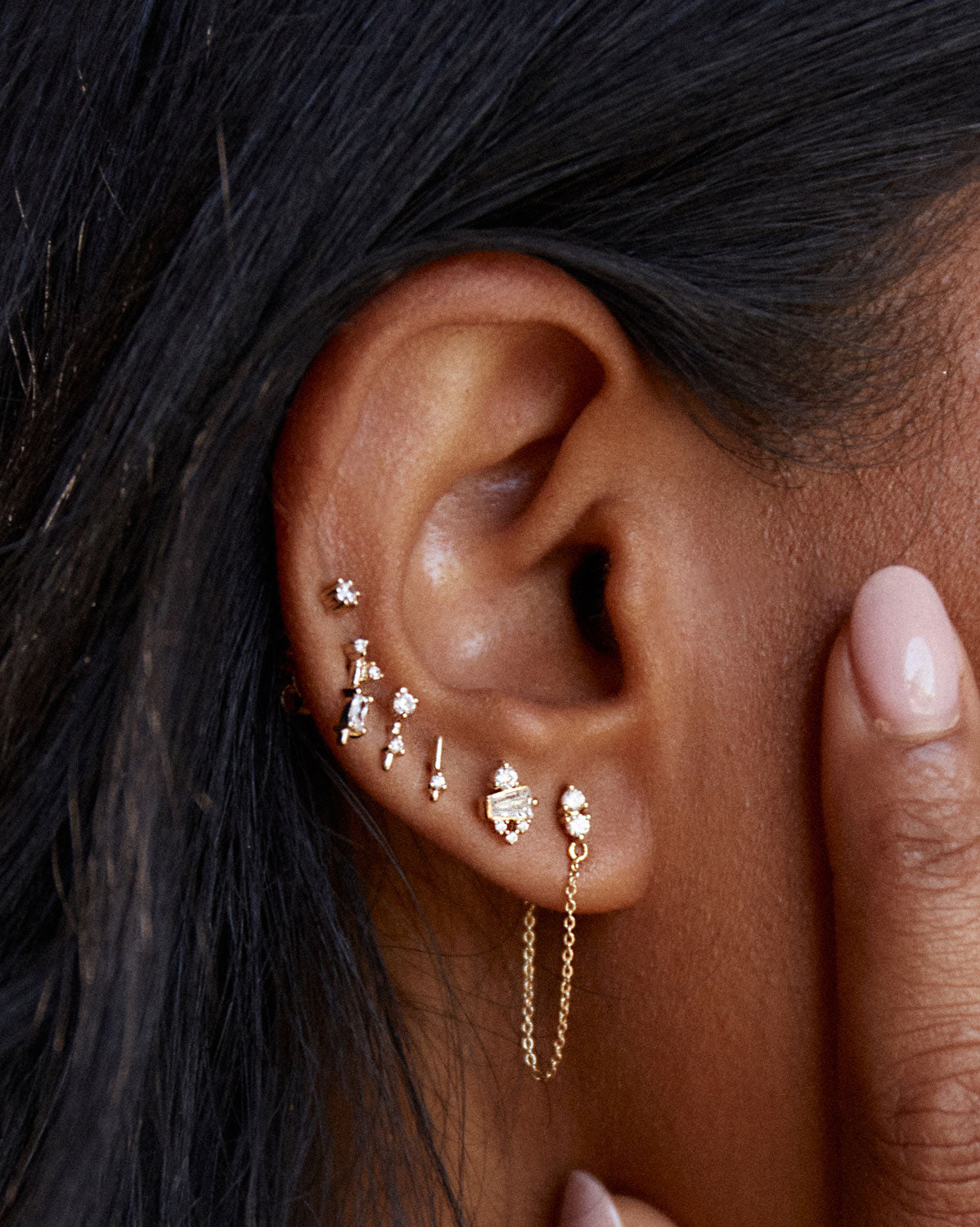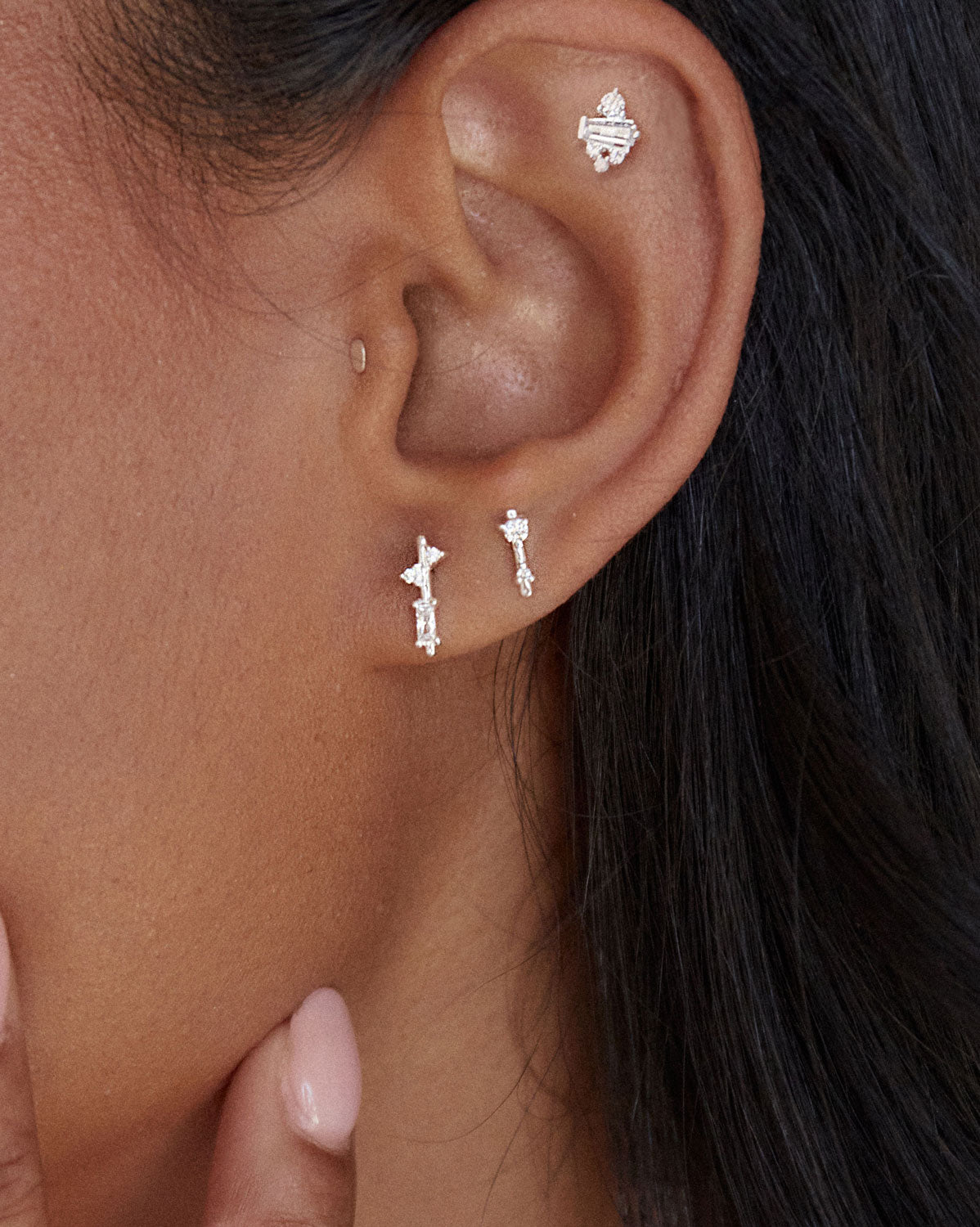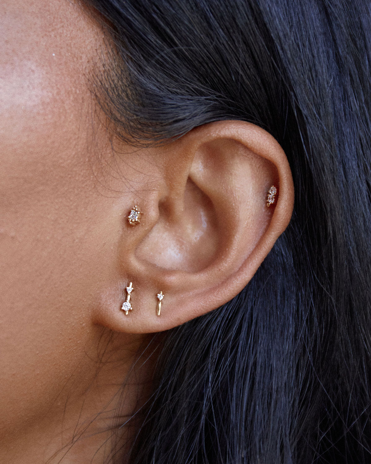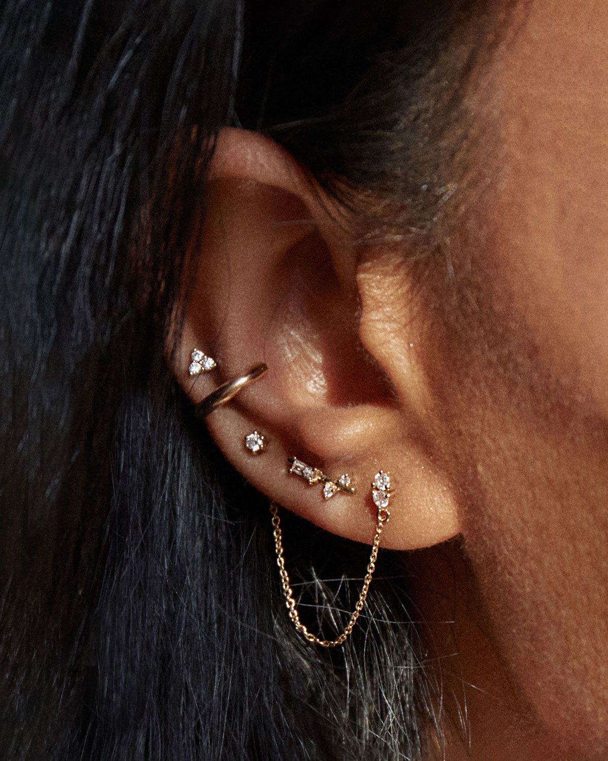 Ear Cuff: Ear cuffs are half circle ear accessories that can be slotted onto the edge of your ear without the need for passing through a piercing. They are designed to be worn in the middle part of the ear where there is a deeper ridge for the piece to be secured.