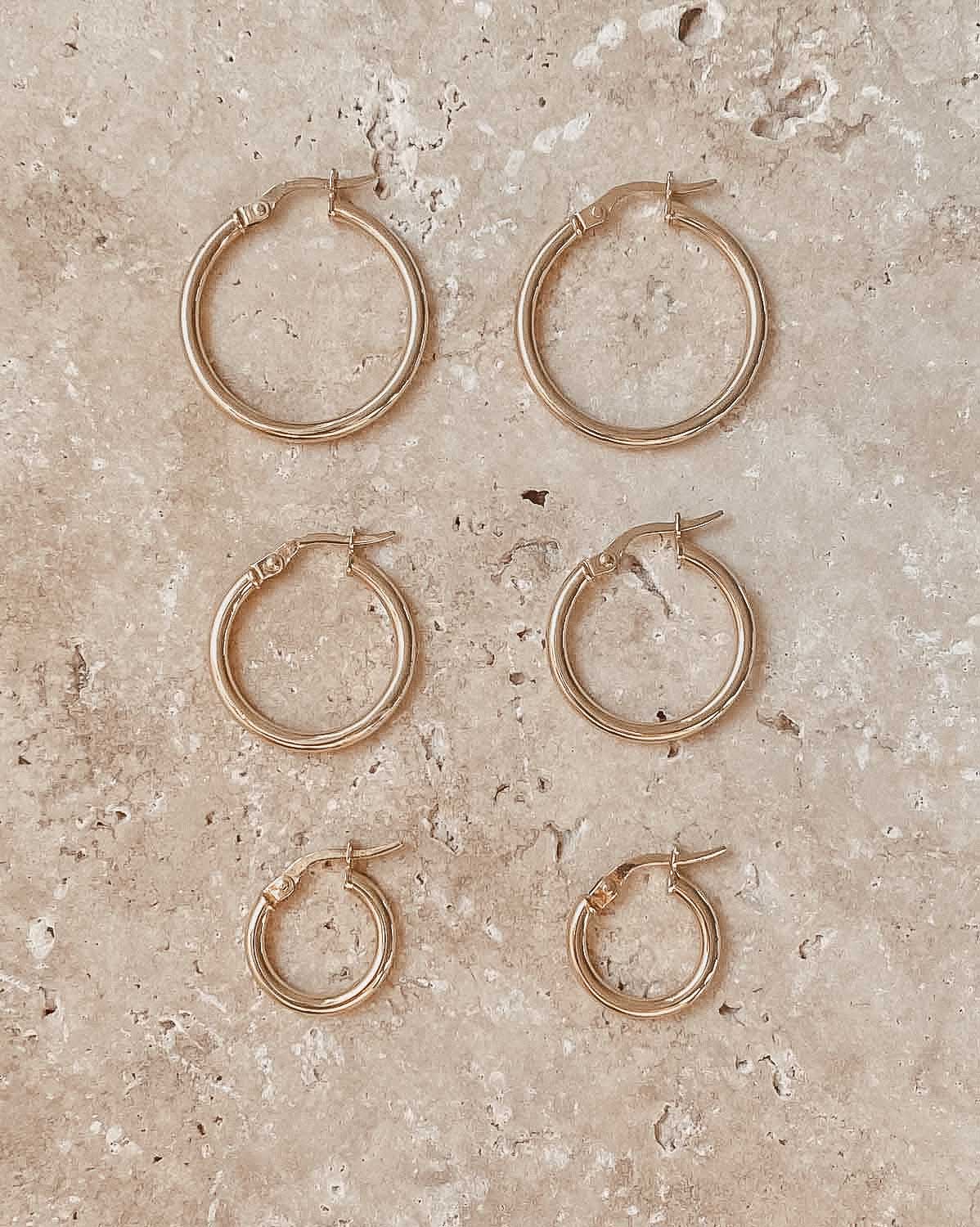 Hoops: Hoops are any earrings that are in the shape of a ring or circle where the earring goes through the ear piercing and joins back up to the other end of the ring or circle.